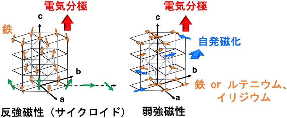 強磁性と強誘電性が共存するマルチフェロイック物質は、次世代メモリデバイス材料として期待されています。また、負熱膨張材料は、半導体などの精密加工現場での位置決めのズレや、異種材料接合界面での剥離といった熱膨張問題の解決につながるため世界的に研究が活発化しており、日本が強みを持つ材料です。