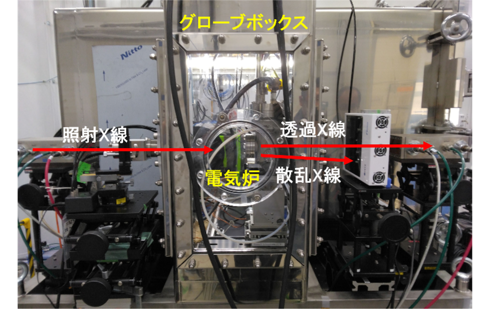 研究チームは、SPring-8の原子力機構専用ビームラインBL22XUにおいて、超高温状態でXRD法とXAFS法を同時に利用できる新しい分析システムを開発しました。