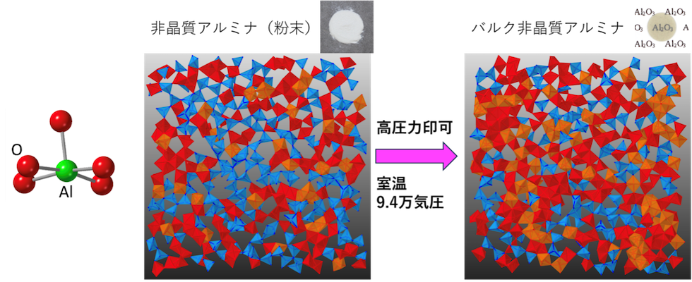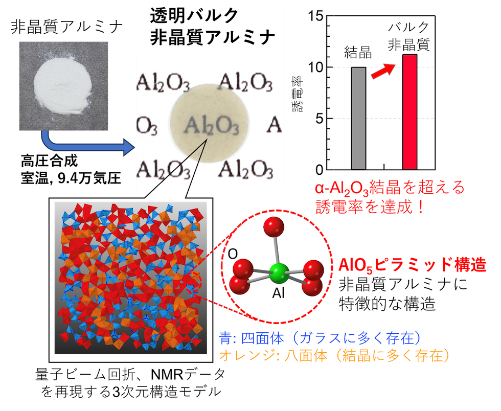 ガラスにならない酸化アルミニウムを透明な非晶質の塊に 〜5配位ピラミッドと6配位八面体からなる超高密度構造と結晶を超える誘電率を高圧力で実現〜(プレスリリース)