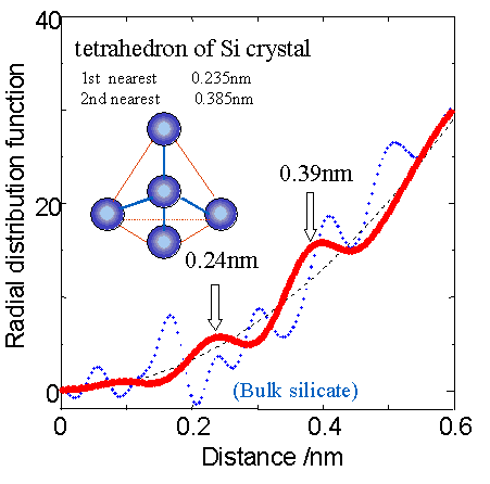 測定より得られたSiOx薄膜の動径分布関数(赤線)と