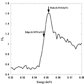図中の矢印(Edge、Peak)はX線回折実験に用いられた波長を示しています。